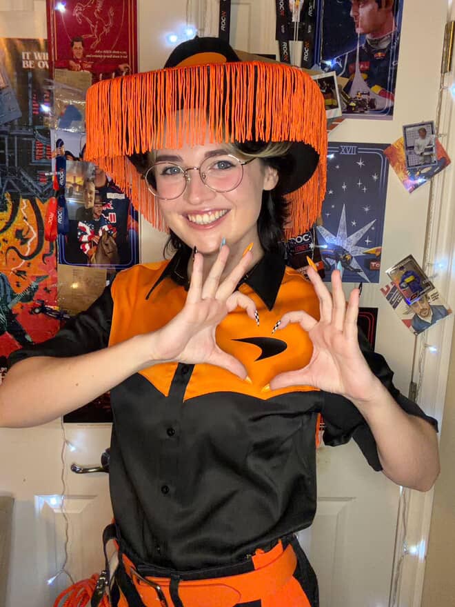 Texas-based F1 creator @samofftrack goes all out with her DIY McLaren, Ferrari, and Mercedes outfits for this weekend’s U.S. Grand Prix at COTA.