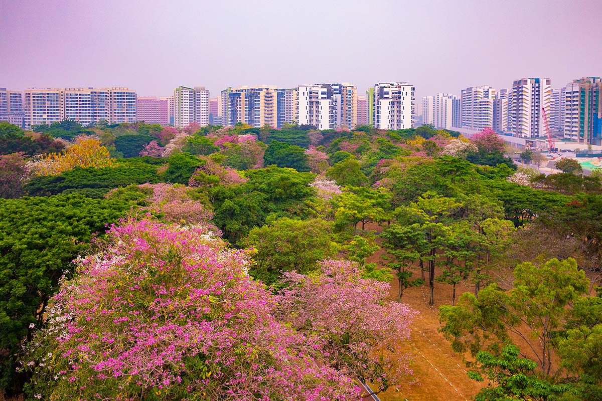 Cherry blossoms bloom across Singapore’s urban green spaces, reflecting the city’s integration of nature, wellness, and Japanese-inspired aesthetics into modern city living.