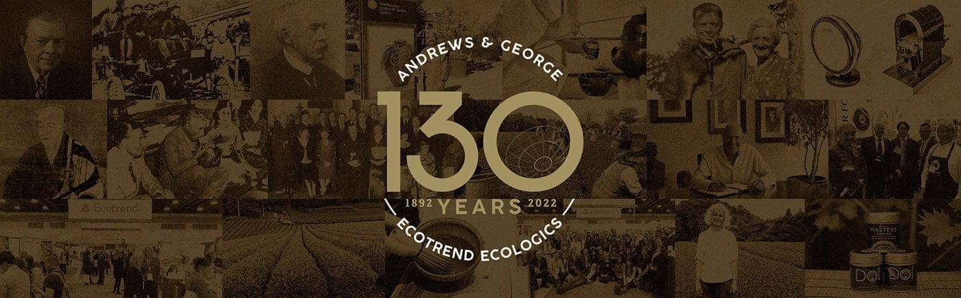 Andrews & George Company Limited has a long history of perseverance and resiliency that led the company to become an industry leader and accomplish many remarkable achievements. Andrews & George paved the way for the creation of Ecotrend Ecologics Ltd. and the DōMatcha® brand, two companies that cherish the same values and relationships today that was integral to the foundation of Andrews & George 130 years ago.