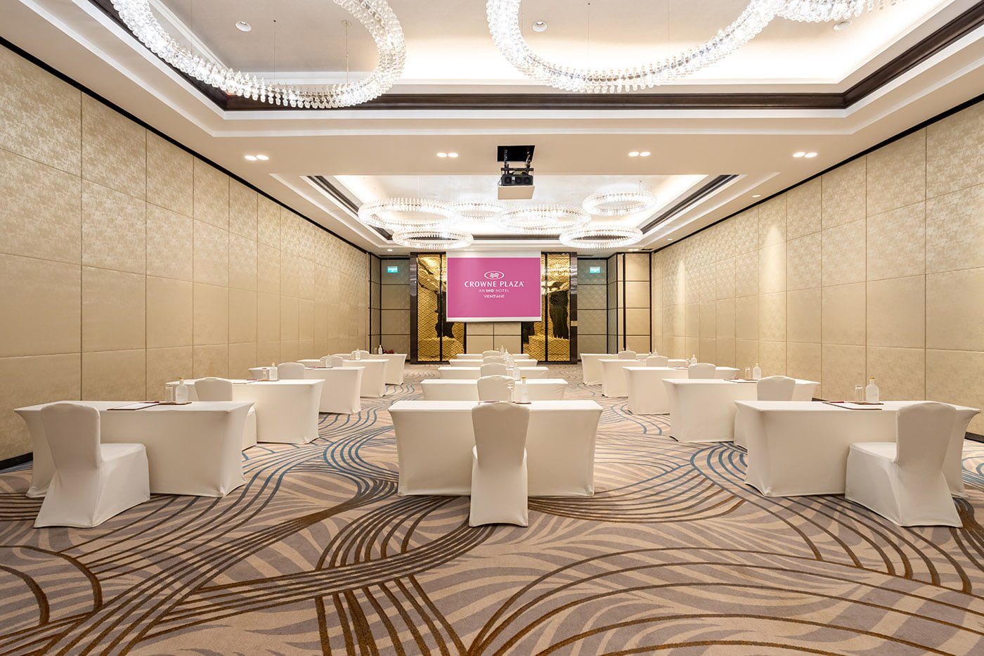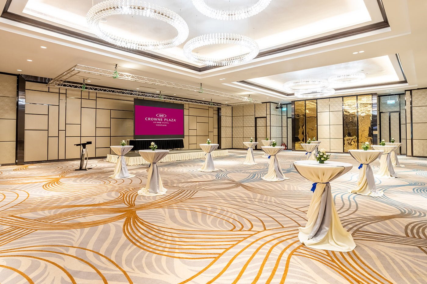 Crowne Plaza Vientiane’s spacious Grand Ballroom spans 784 square meters of unobstructed floor space, designed to entertain 555 attendees in a banquet setting or 1,012 in theatre-style setting.