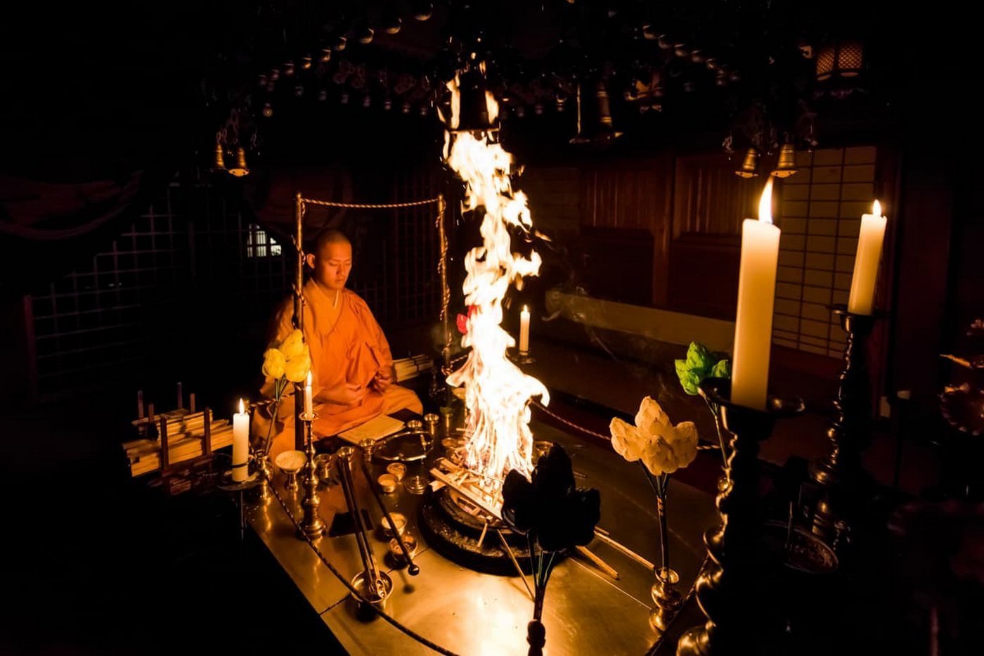 Guests are invited to partake in the daily rituals. In the morning, a heartfelt ceremony pays homage to ancestors and revered Buddhist saints, followed by the captivating Goma fire ritual, a prayer to fulfill wishes. The serene ambiance and soft candlelight create an ideal setting for introspection. In the evening, guests are taught the Ajikan method of meditation and are encouraged to practice.