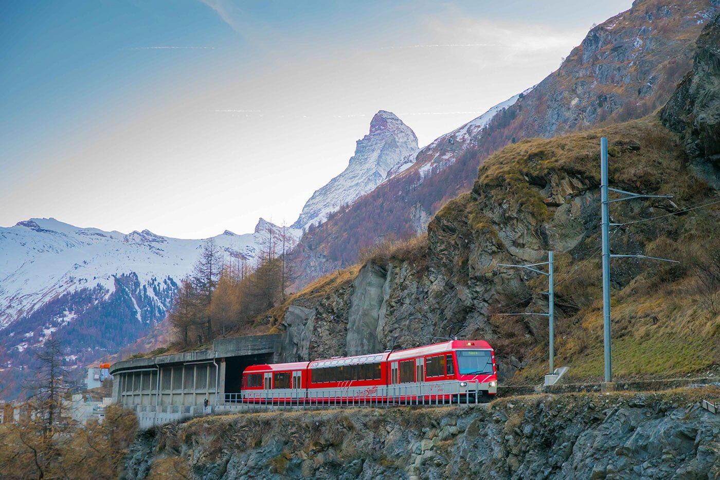 The idyllic village of Zermatt at the foot of the Swiss Alps offers stunning views of the world-famous Matterhorn.