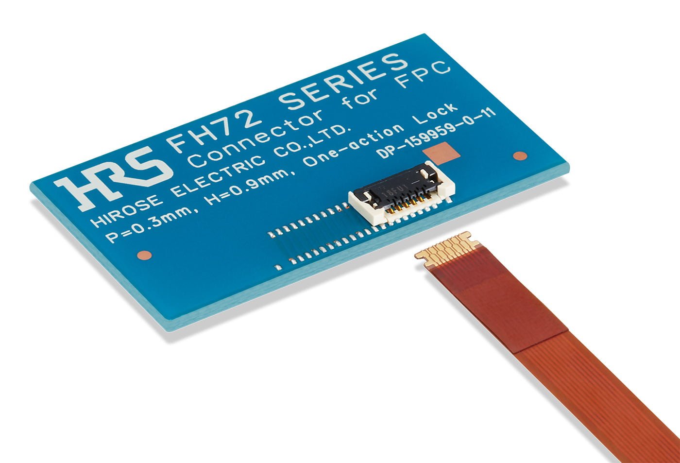 Right: FH72 series — 0.3mm Pitch, 0.9mm Height, Top Contact One Action Lock, High FPC Retention Force Connector.
