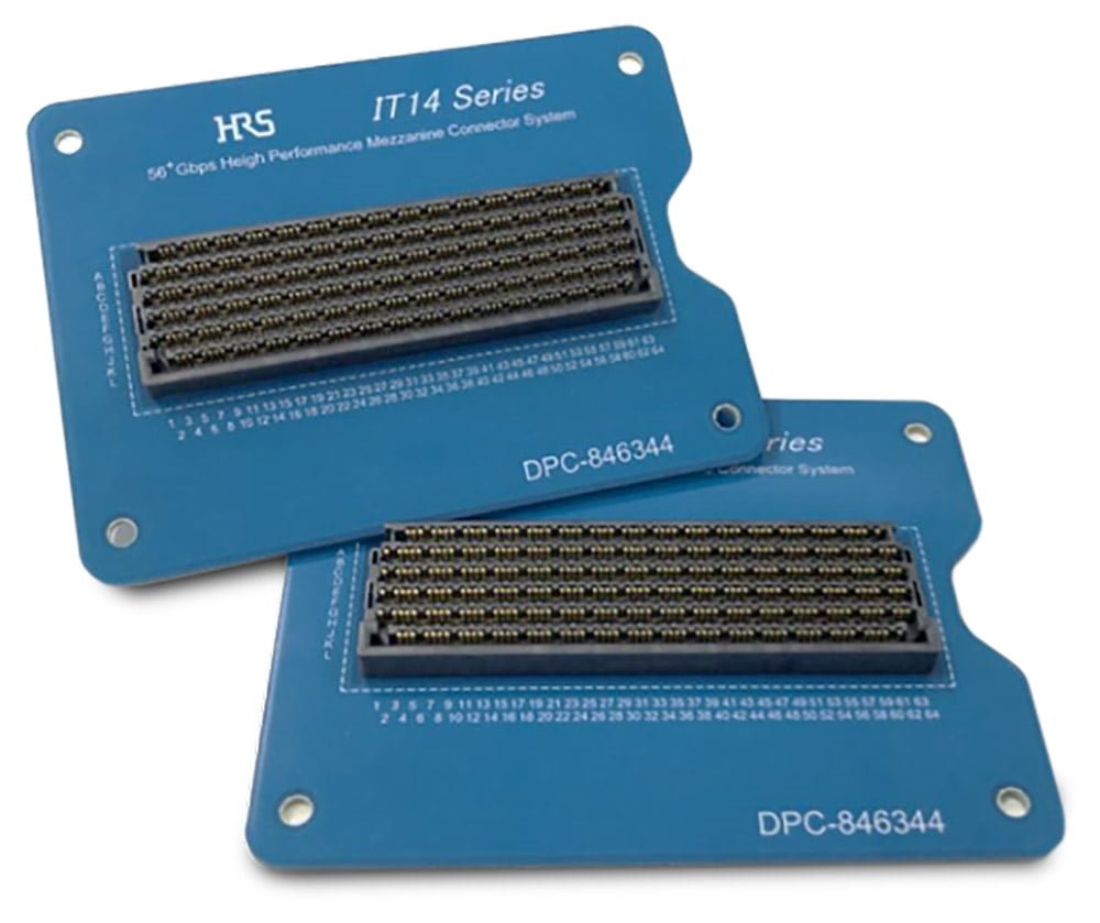 Right: IT14 Series — hermaphroditic board-to-board BGA mezzanine connector that supports up to 112Gbps PAM4 transmission speed.