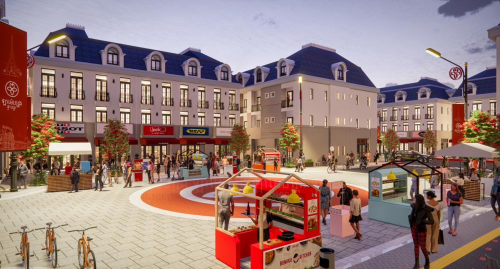 This modern shophouse development project by Cambestate Management Co., Ltd., the winner of the Best Shophouse Development title at the 8th annual PropertyGuru Cambodia Property Awards, is poised to become the new central business district in northern Phnom Penh. Catering to the needs of residents in the four districts of Russey Keo, Sen Sok, Prek Pnov, and Chroy Changva, it offers a diverse range of amenities, including shops, services, restaurants, fast-food outlets, and grocery stores, available 24/7.