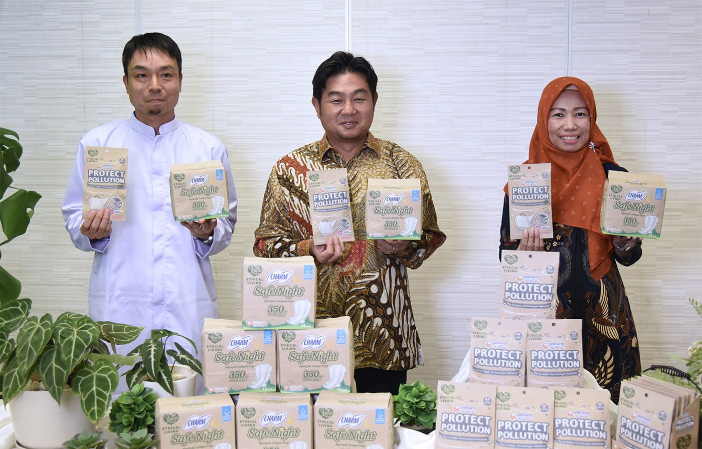 In June 2021, Uni-Charm Indonesia launched two paper-packaged products; the Charm Safe Night feminine napkin and the Protect Pollution mask.