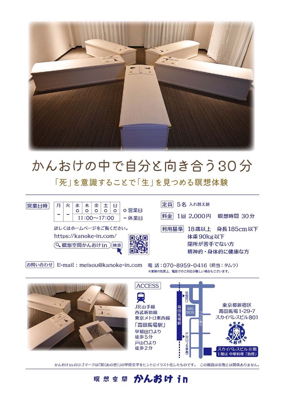 Meiso Kukan Kanoke-in’s coffin meditation experience. Located in the Takadanobaba neighborhood, this innovative concept allows guests to experience peace and introspection through an unconventional approach to mindfulness.