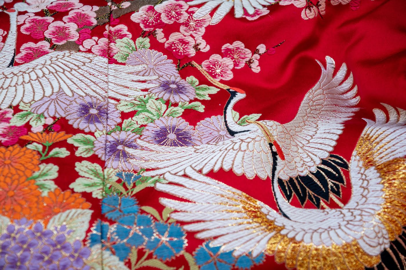 Perhaps what makes the kimono even more special is the story and symbolism each robe embodies. In the early years of its emergence, kimono prints and patterns frequently contained multiple layers of significance and meaning. The crane, for example, is the most commonly-depicted bird in customary kimono designs. It is a sign of longevity and good fortune, rooted in legend and folklore, since cranes are said to live for a thousand years and to inhabit the country of the immortals.
