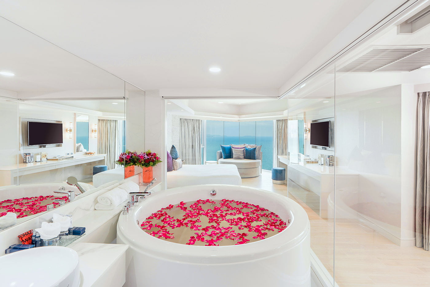 The Royal Cliff always takes the opportunity to invest in major renovations and upgrades.  One of our major achievements was the creation of our new spectacular infinity-edged pool, the Sky Aquarium! Overlooking the stunning Gulf of Thailand, this incredible pool features a mini waterpark for children along with a redesigned spacious landscape for event spaces and guest recreation including outdoor massages, surf skating, and many more. Being the largest infinity pool in Thailand, it is the perfect place for grand-scale events, extravagant banquets, or intimate celebrations.