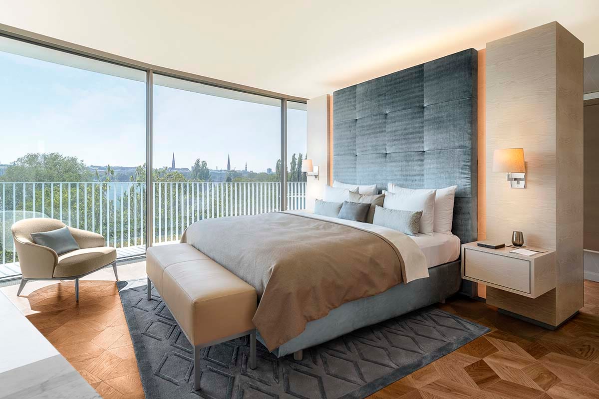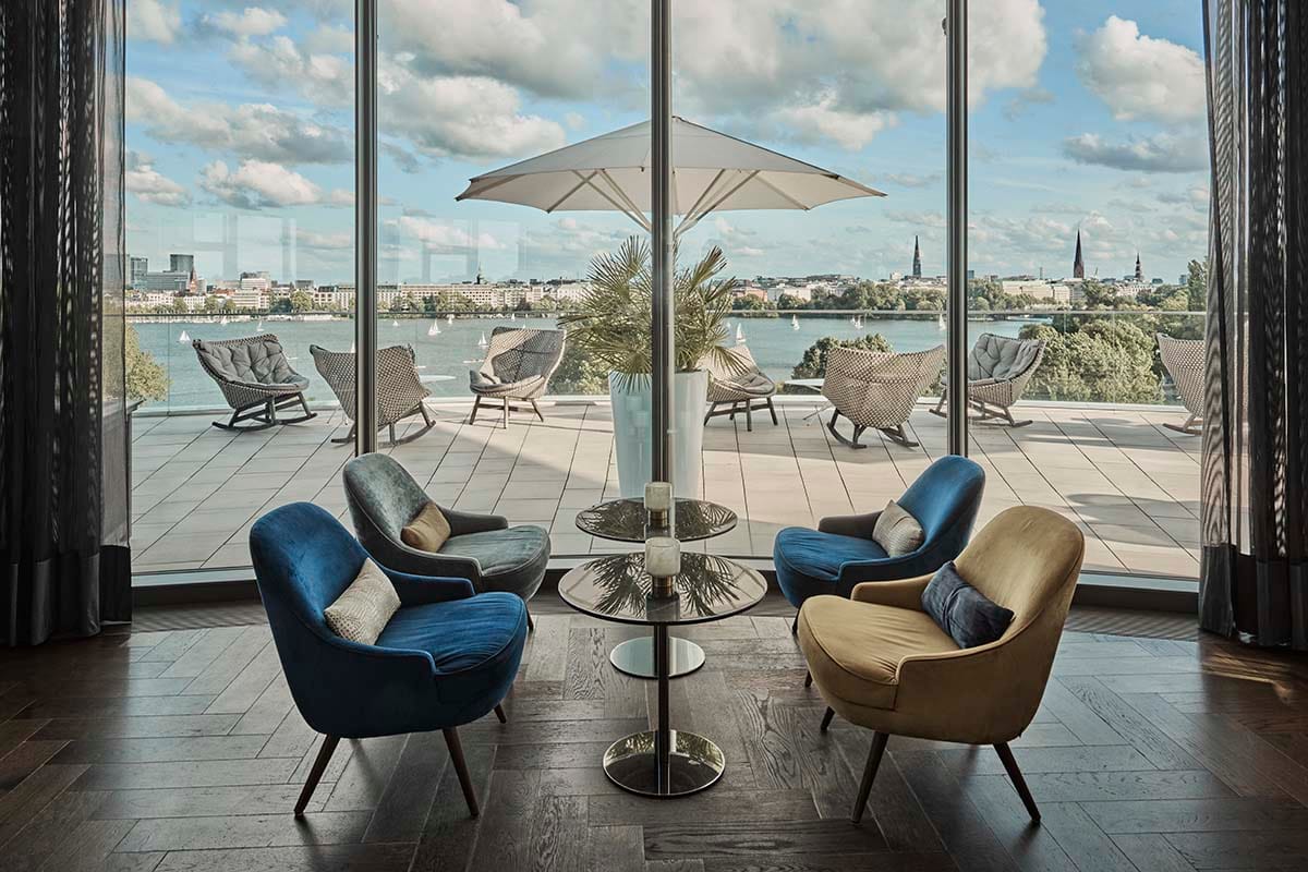 An homage to Hamburg, The Fontenay, located along the scenic shores of Lake Alster, is a modern city resort that balances urban sophistication with the tranquility of its park surroundings. Featuring captivating architecture, this elegant hotel, opened in 2018, embodies the essence of the city itself—welcoming, cosmopolitan, and subtly luxurious.