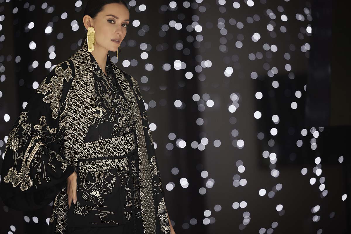 “I love anything Japanese. I’m married to a third-generation Japanese. I think there’s just something so beautiful and so special about the Japanese culture. The aesthetic is so refined, and this is something I am drawn to, a lot,” Josie Natori shared with Bridges, at the collection reveal. “I have quite a collection of textiles, ceramics, and other Japanese objects. I mean, I’m inspired by a lot of other Asian cultures, but Japanese, in particular, I am really drawn to, for the refinement and sophistication. There’s a subtlety and understatement; it’s quiet luxury. There’s something very spiritual about the Japanese design aesthetic. It’s timeless, yet also inspired by the seasons,” she added.